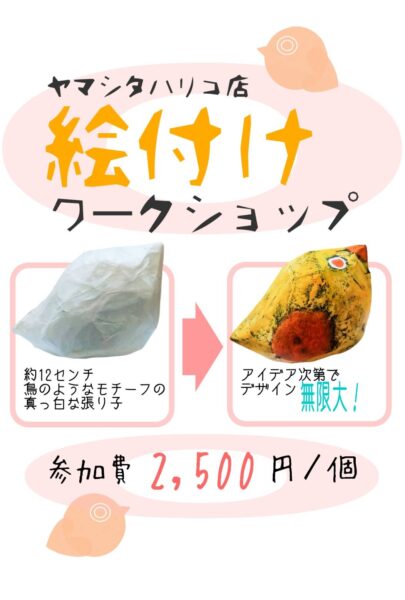 約12センチ鳥のようなモチーフの真っ白な張り子にどんなふうに色を塗るか!?アイデア次第でデザイン無限大!?