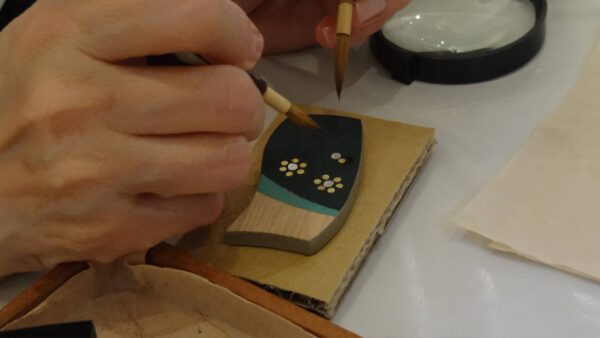 その技法を使って、ブローチに箔で七曜と言われる模様を貼っていく体験です